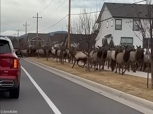 整った街並みを駆け抜ける数十頭のエルク…コロラドでしか見られない光景(動画)